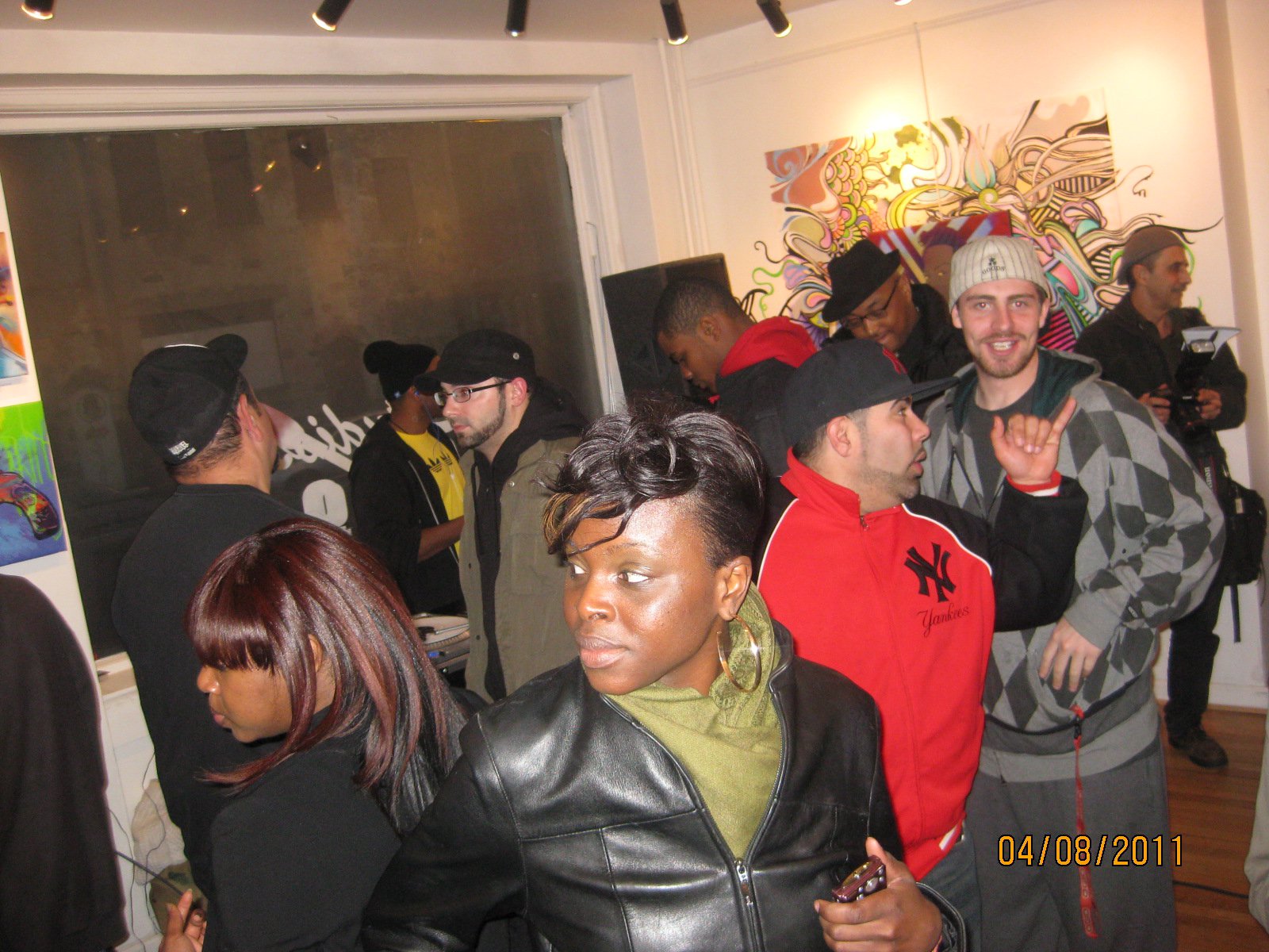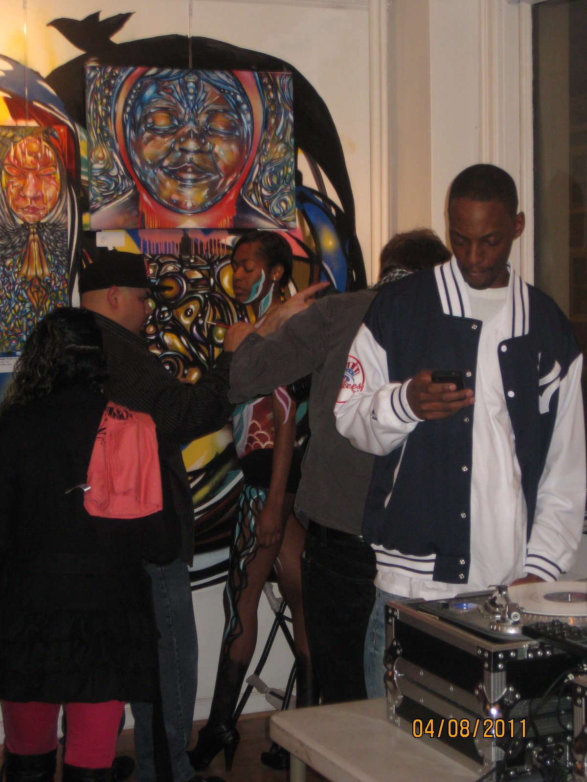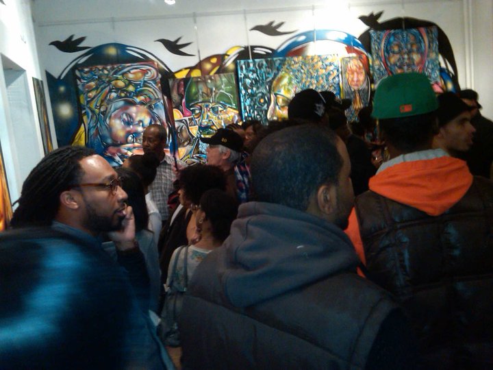 On April 8, 2011 at 219 Gallery in Trenton, NJ, S.A.G.E. Collective’s first exhibit as a collective successfully opened. Over one hundred people from all over Trenton and surrounding areas made the trip thru the rain to see the artwork and meet the artists responsible for over a dozen murals in Trenton itself. The music performers, who were going to be on the street like a siren calling visitors from the capitol, had to move the show inside because of the rain, which made for a very cozy scene. Windows fogged, house packed, the art show became part concert! The first video is a virtual walkthru of the exhibit for all those far away who can not make it to see the works in person. All the artists really worked hard and pulled off some amazing pieces.